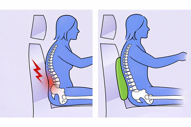 De onderrug (lumbale zone) heeft tijdens het rijden constante ondersteuning nodig. Zonder lendesteun ontstaat er spanning in de rug, wat kan leiden tot vermoeidheid of klachten.